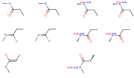 Note: If there are 8 or less ionizable atoms in the molecule, then microspecies distribution is displayed on the chart, otherwise macrospecies distribution is shown. Images of microspecies are displayed only on the microspecies distribution chart; on macrospecies distribution chart the formal charges of the macrospecies are shown.